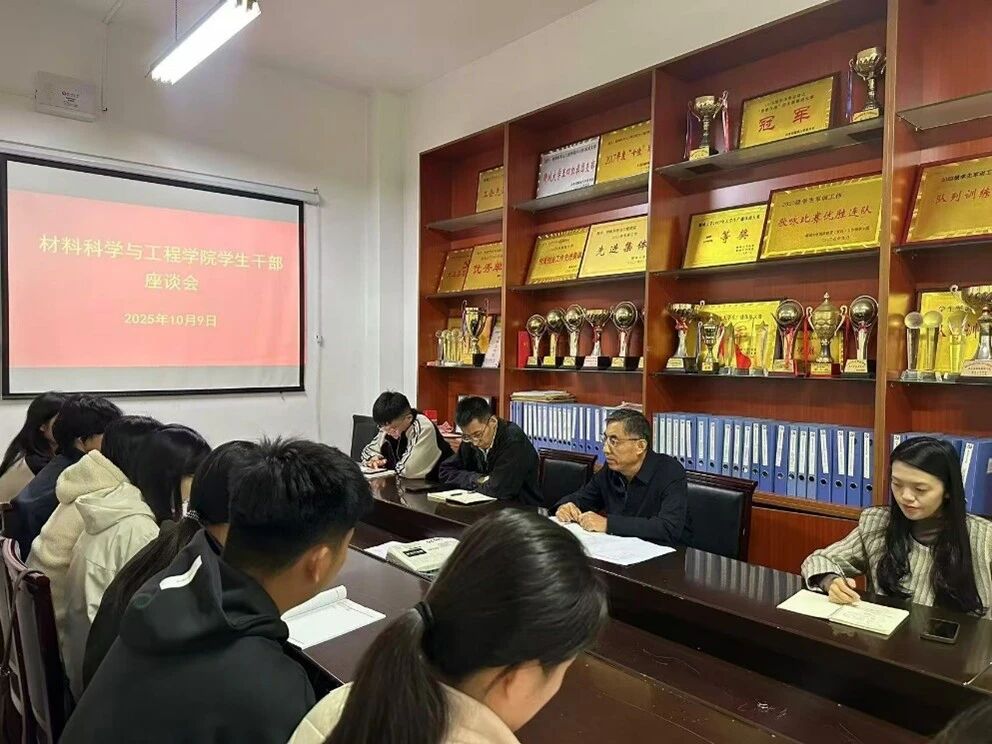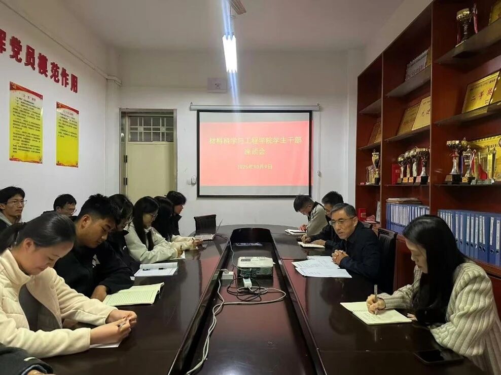 为进一步加强学生骨干队伍建设,明确学生骨干工作方向与职责,2025年10月9日,太阳集团1088vip太阳集团1088vip于东校区4#A121党员活动室召开学生干部座谈会。学院党委副书记郑永朝,辅导员齐亚伟、梁艺璇、陆含及全体2026届新当选的学生干部骨干参会。