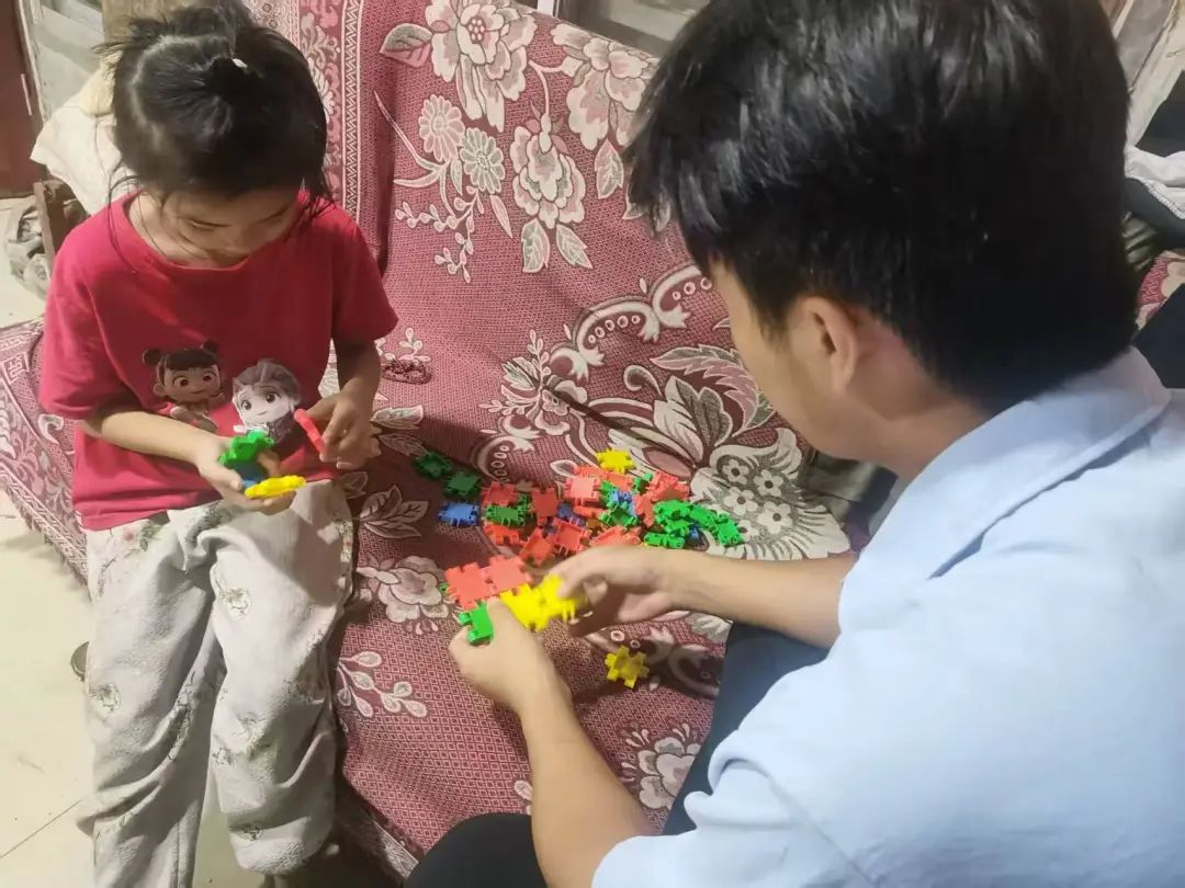 实践队围绕“四个一”系列活动展开具体实践:在“共同打扫一次卫生”环节,志愿者与孩子们一同整理卧室并传授物品分类整理技巧,助力他们养成独立自主的品质和良好生活习惯;“共同读一本好书”活动中,志愿者与孩子们围坐共读绘本,孩子们从好奇试探转变为投入参与,主动分享想法;“共同玩一次游戏”环节充满欢声笑语,志愿者根据孩子们的兴趣开展游戏,让孩子们在趣味中发掘爱好;“共同聊一次天”活动则搭建起心灵沟通的桥梁,志愿者悉心询问学习、交友等情况以深入了解孩子们的内心世界,以实际行动给予支持与关爱,回应其内心期盼。