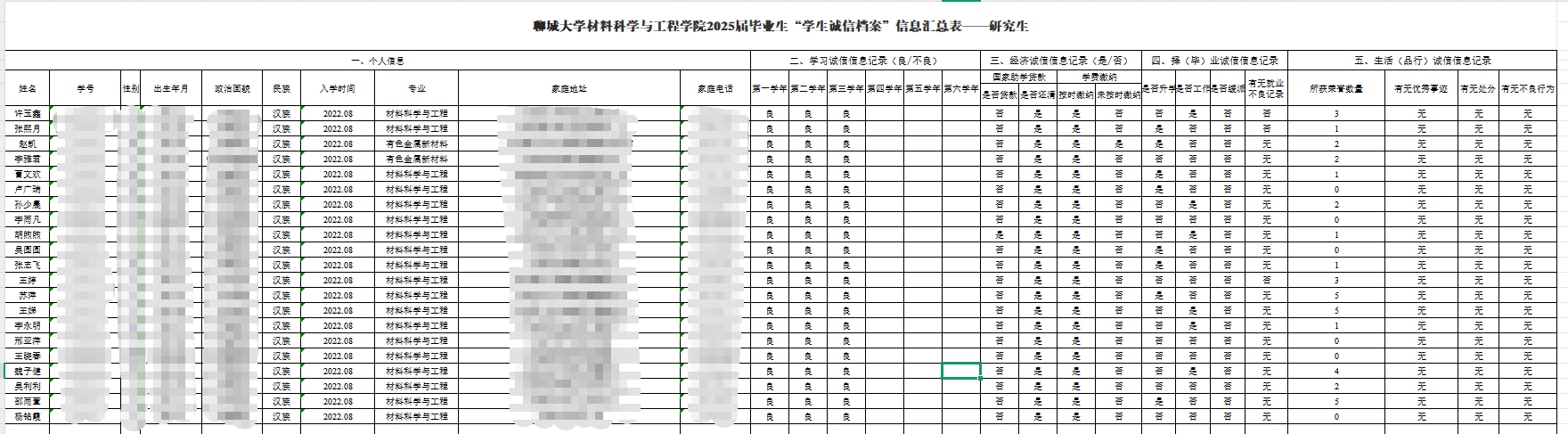 学院建立的2025届诚信电子档案中涵盖了学生个人信息学习、学习诚信信息、经济诚信信息、择(毕)业诚信信息、生活(品行)诚信信息等纪录。通过不同维度,帮助2025届全体毕业生认真反思在校期间的自身诚信表现,及时巩固诚信意识,认真做到“诚以立世,信以立人”,加强诚信教育实效。